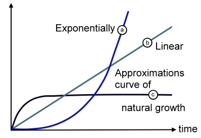 c) the natural growth, almost everything natural in the world grows like this: trees eg growing until they are grown up, then they stop growing, That is the way it is on Earth.