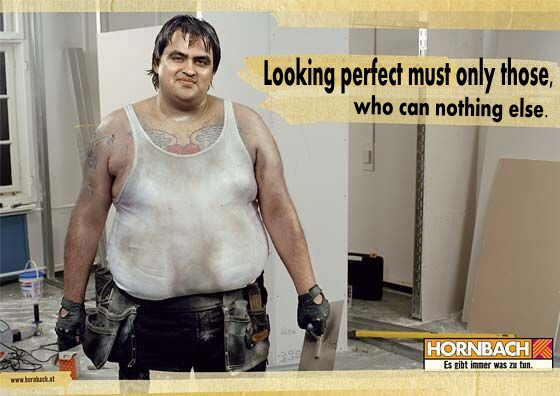 However, that is only one side. The other side is the way one try to tell you what it takes to be a great, attractive, and desirable person. Great hair, skin, teeth, body, car, apartment, clothes... that's why I find this ad from a local hardware store so refreshing. Funny the sign found in Jerusalem or the statement on a railway station.